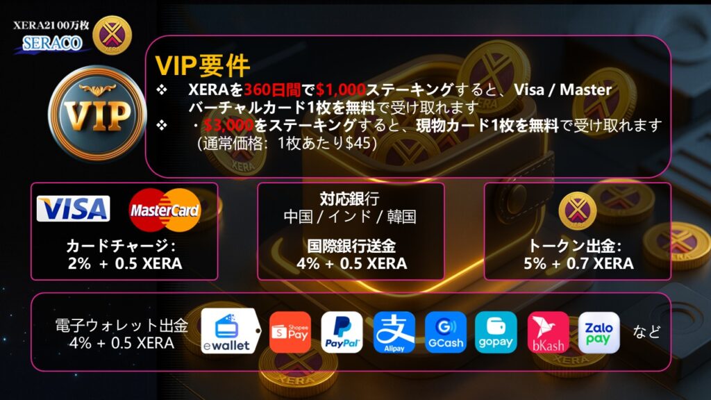 銀行やeウォレットを含むグローバルな決済ゲートウェイパートナーシップを通じて、XERAは世界中の加盟店と消費者を繋ぎ、ブロックチェーンと現実世界の支出を繋ぎます。